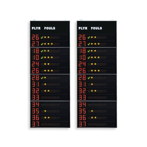 Par de painéis laterais (módulos laterais) para exibir o dorsal e falhas / Penas de 14 jogadores nas duas equipes. Adequado para Basquete (Basket), Voleibol, Futsal (Futsal), de Waterpolo, Handball, etc ..