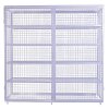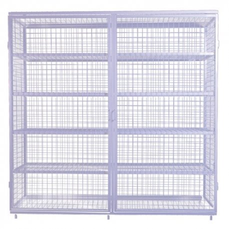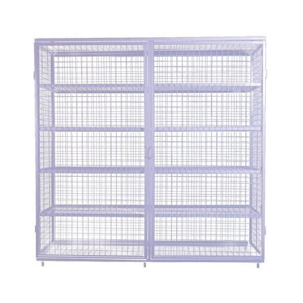 Fabricada com estrutura de aço estirado a frio com dimensões de 20 x 20 x 1,5 mm. Malha soldada de 50 x 50 com espessura de 5 mm. Todo o armário tratado contra a corrosão. Dispõe de 4 prateleiras metálicas reguláveis em altura. Sustentado por 6 pés revestidos de borracha de 10cm, que evitam a deterioração do pavimento. Sistema de abertura de porta dupla com dobradiças soldadas à estrutura, para facilitar a entrada e recolha de material. Sistema de fecho com cadeado (não incluído).