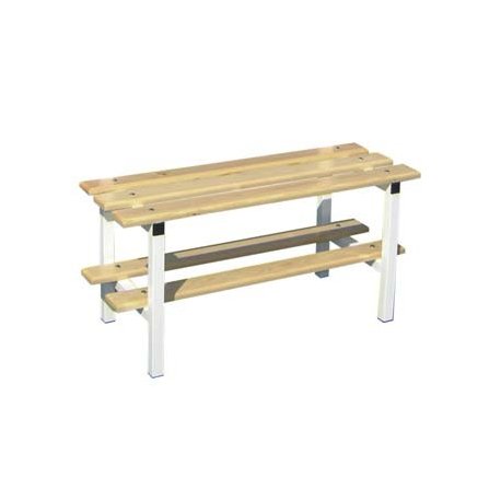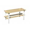 Banco de balneário simples 1 mt, composto por estrutura metálica e ripas em madeira. Largura 38cm e altura 49cm