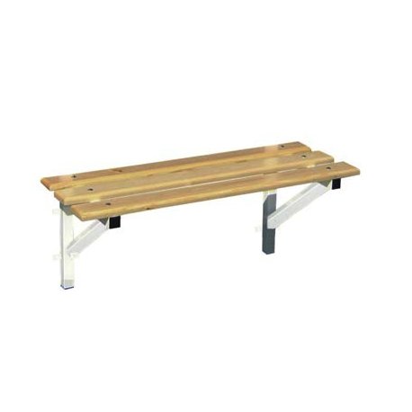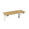 Banco balneário de fixar à parede 2.5 mts, composto por estrutura metálica e ripas em madeira. Largura 38cm e altura 49cm