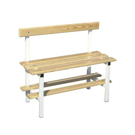 Banco de balneário com costas 2 mts, composto por estrutura metálica e ripas em madeira. Largura 38cm e altura 81cm