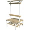 Banco vestuário duplo porta sapatos, cabide e prateleira superior 3mt, composto por estrutura metálica e ripas em madeira. Largura 78cm e altura 181cm