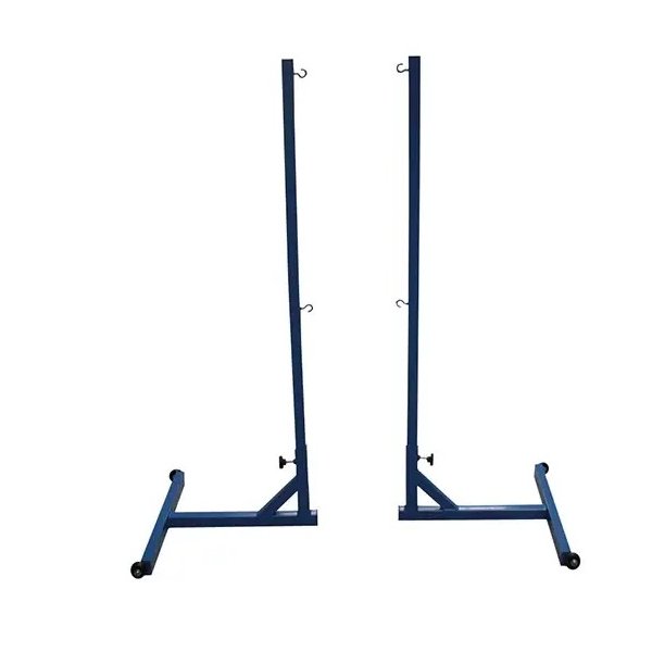 Par de postes de badmington metálicos amovíveis, fabricados em tubo quadrado de 45mm, inclui base com contrapeso e 2 rodas.