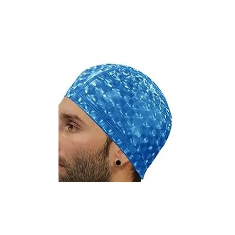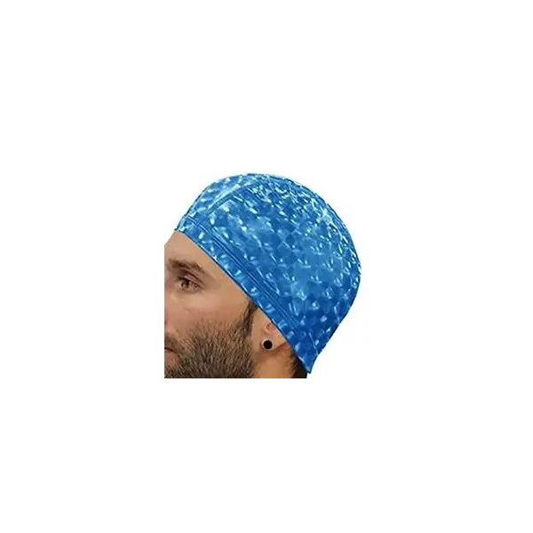 Touca de poliuretano que oferece um conforto suplementar ao utilizador, uma vez que não exerce pressão sobre o couro cabeludo.