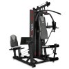Multi-estação que combina um leg press sentado e um flexor abdominal com mergulho. A sua estrutura em aço e os suportes estofados extra grandes tornam-na perfeitamente adequada para os treinos mais exigentes. Desfrute das vantagens de ter uma máquina totalmente equipada em casa.