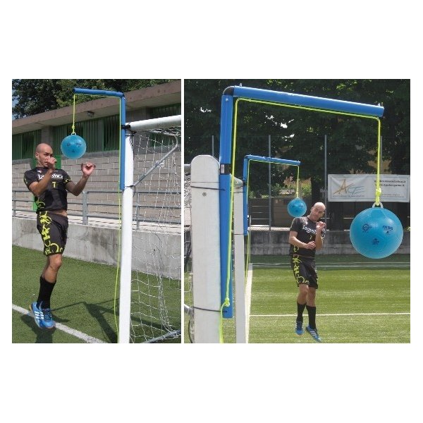 Poste curto com suporte de bola para treino de cabeceamento PVC Ø 48mm, com sistema de fixação anti rotação para fixar a baliza e cordas fluorescentes p/ rápido ajustamento