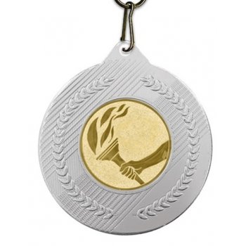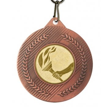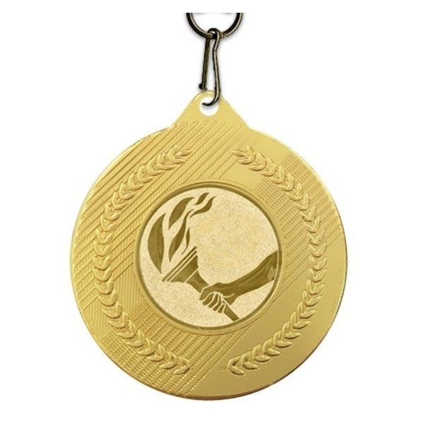 Medalha com diâmetro de 50mm, inclui centro à escolha com diâmetro de 25mm e fita 10mm.