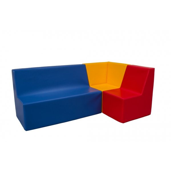 Conjunto com sofá de canto, sofá coletivo e sofá individual