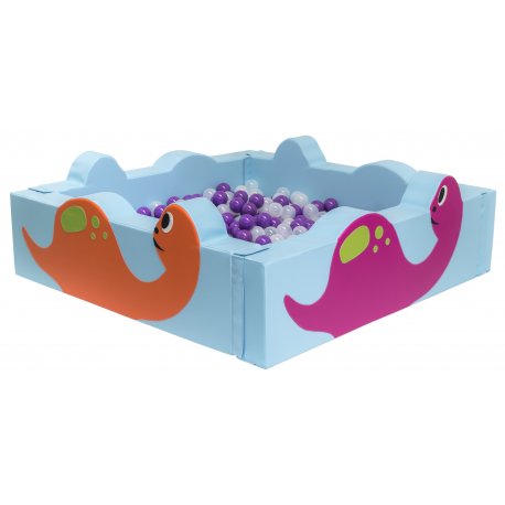 Piscina quadrada Dinos com 160x160x54x15cm. MATERIAL espuma de poliuretano de 23kg/m3 e revestidos com tela impermeável, lavável, com tratamento ignífugo M2