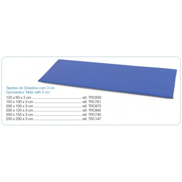 Tapete com 200x120x3cm. MATERIAL espuma de poliuretano de 23kg/m3 e revestidos com tela impermeável, lavável, com tratamento ignífugo M401