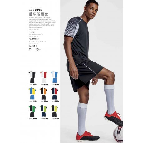 Conjunto desportivo unisexo composto de 2 t-shirts + 1 calças. 1. T-shirts com manga semi ranglan estampadas. 2. Gola redonda com tricô na parte posterior. 3. A cor da segunda t-shirt compõe-se de maneira contrária. 4. Calções com cós elástico com cordão interior a combinar com costura decorativa de segurança. 5. Banda lateral a contrastar e abertura lateral na baínha das calças. O novo conjunto desportivo JUVE tem um design inovador e duas opções de camisolas para que você possa misturá-las e combiná-las como quiser. Composição: 100% poliéster , 140 g/m129