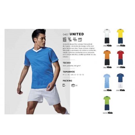 Inspirado nas melhores equipes de todos os tempos, o conjunto United é a escolha ideal para vestir sua equipe. Disponível em 7 cores calção em contraste, com detalhes nos ombros, decotes e mangas.