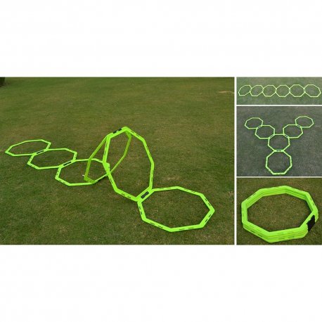 Pode ser alinhado para formar várias formas, permite efetuar séries de aros e obstáculos.