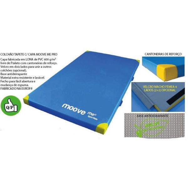 Colchão/tapete com CAPA EM LONA DE PVC PRO REFORÇADA E ANTIDERRAPANTE com 250X125X6CM. Material resistente. Fecho para fácil abertura e mudança de espuma. Espuma com densidade de 30Kg/m3