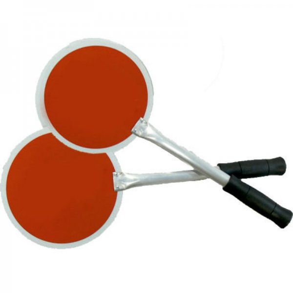 Raquete de sinalização em alumínio. Cabo com pega ergonómica. Vermelha nas duas faces.
