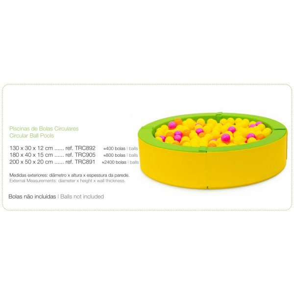 Piscinas de Bolas Circular com 200x50x20cm - MATERIAL espuma de poliuretano de 23kg/m3 e revestidos com tela impermeável, lavável, com tratamento ignífugo M2