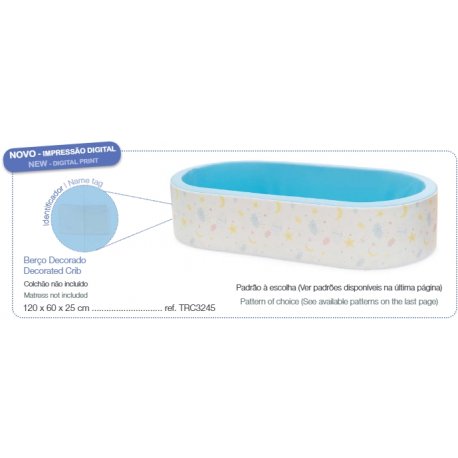 Berço Decorado com 120x60x25cm (para colchão com 108x48x10cm)