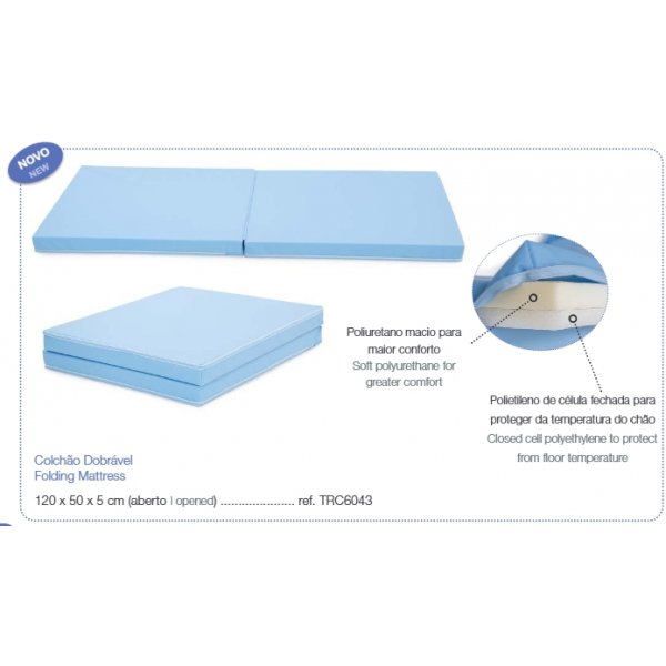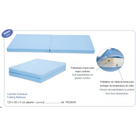 Colchão dobrável com 120x50x5cm (espuma de dupla densidade) - MATERIAL espuma de poliuretano de 23kg/m3 e revestidos com tela impermeável, lavável, com tratamento ignífugo M2