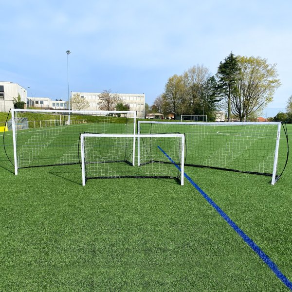 Esta baliza dobrável pode ser utilizada em todos os tipos de terreno (relva, sintético, duro, etc.). Pode ser montada e desmontada em 2 minutos.