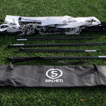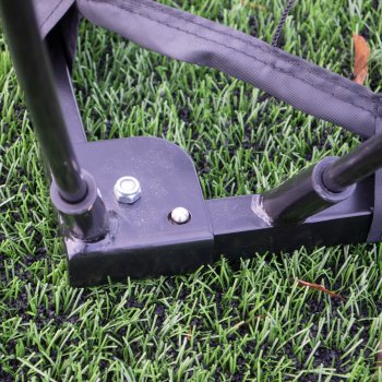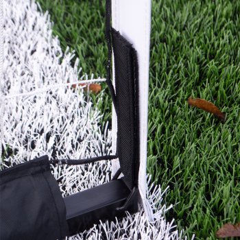 4 cavilhas em forma de “U” incluídas. Almofadas antiderrapantes sob a base da baliza para proteger o solo interior.