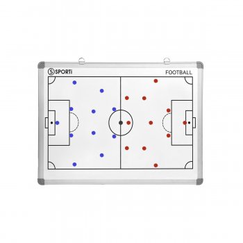 Quadro magnético leve com bordo em alumínio e campos de futebol impressos.