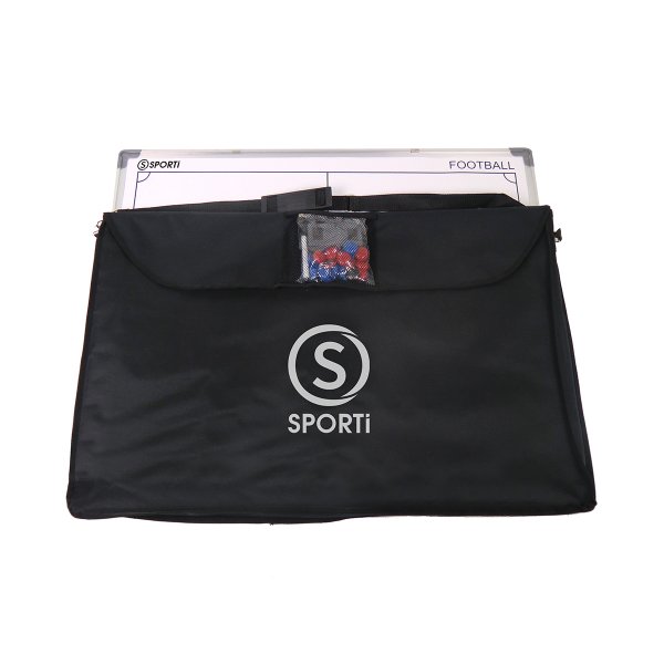 INCLUI: saco de transporte, ímanes (12 azuis, 12 vermelhos e 1 preto), 1 apagador e 1 caneta de feltro.
