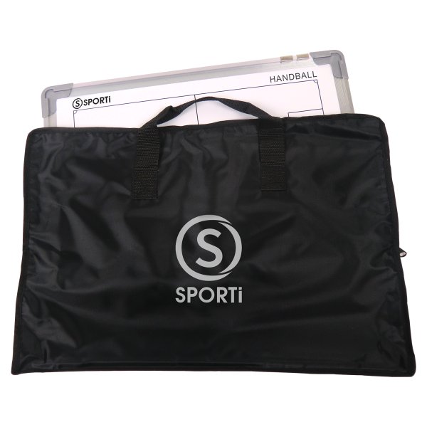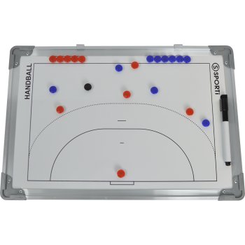 Quadro magnético leve com bordo em alumínio e campos de andebol impressos.