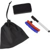 INCLUI: saco de transporte, ímanes (10 azuis, 10 vermelhos e 1 preto), um apagador e 1 caneta de feltro.