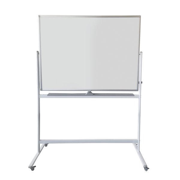 Quadro branco de dupla face com rodas e travões.