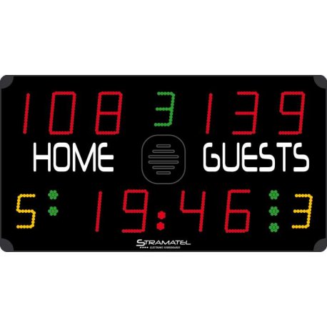 Faltas de equipa (BB)/Temporizador de exclusão: 2 x 1 dígito LED amarelo (12 cm)