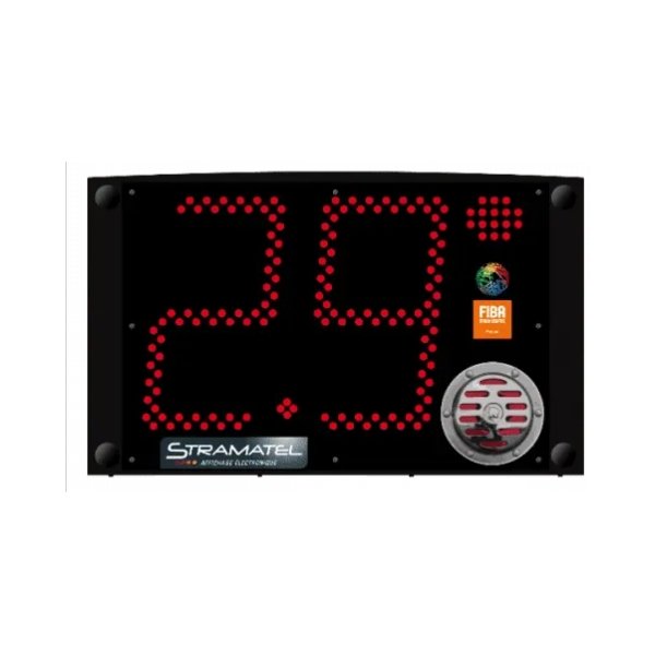 Temporizador de ataque 24/14 segundos: 2 dígitos LED vermelhos (23 cm) por ecrã