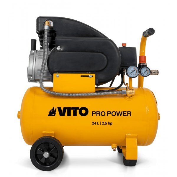 O Compressor a Óleo de 2,5 CV/1,9 kW da VTO (VICO25A) com capacidade de 24 litros é ideal para utilizações menos intensivas.